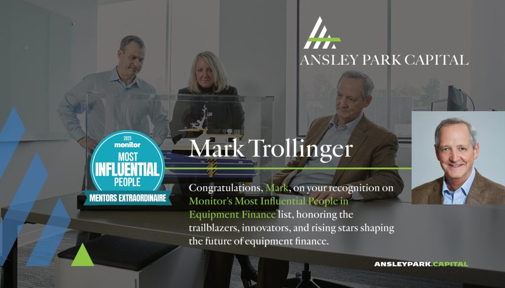 Ansley Park Capital was recognized in Monitor’s Second Annual Best Companies Issue, which celebrates companies in equipment finance that demonstrate excellence in leadership, culture, inclusion, community impact and innovation. Named as a best company for culture in the equipment finance industry, the premier equipment finance publication acknowledged Ansley Park Capital’s unique ability to blend shared values, integrity and teamwork to create an unparalleled environment for employees and partners alike.